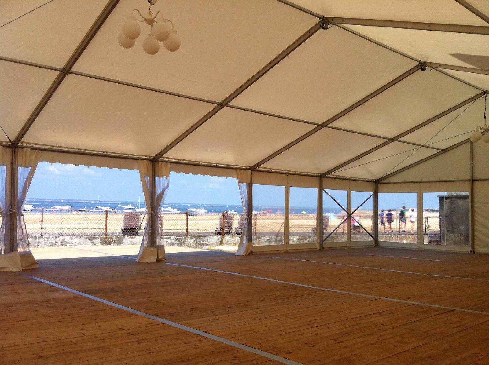 Dans des cas spécifiques nous pouvons aussi proposer depuis l'an dernier un nouveau matériel; une climatisation qui permet de baisser jusqu'à 10 à 15° la température intérieure d'un chapiteau.